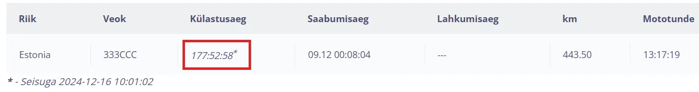 Kui raportis “Külastusaeg” tulbas on numbri lõpus ”*” siis see tähendab, et sõiduk ei ole aruande lõpukuupäeva