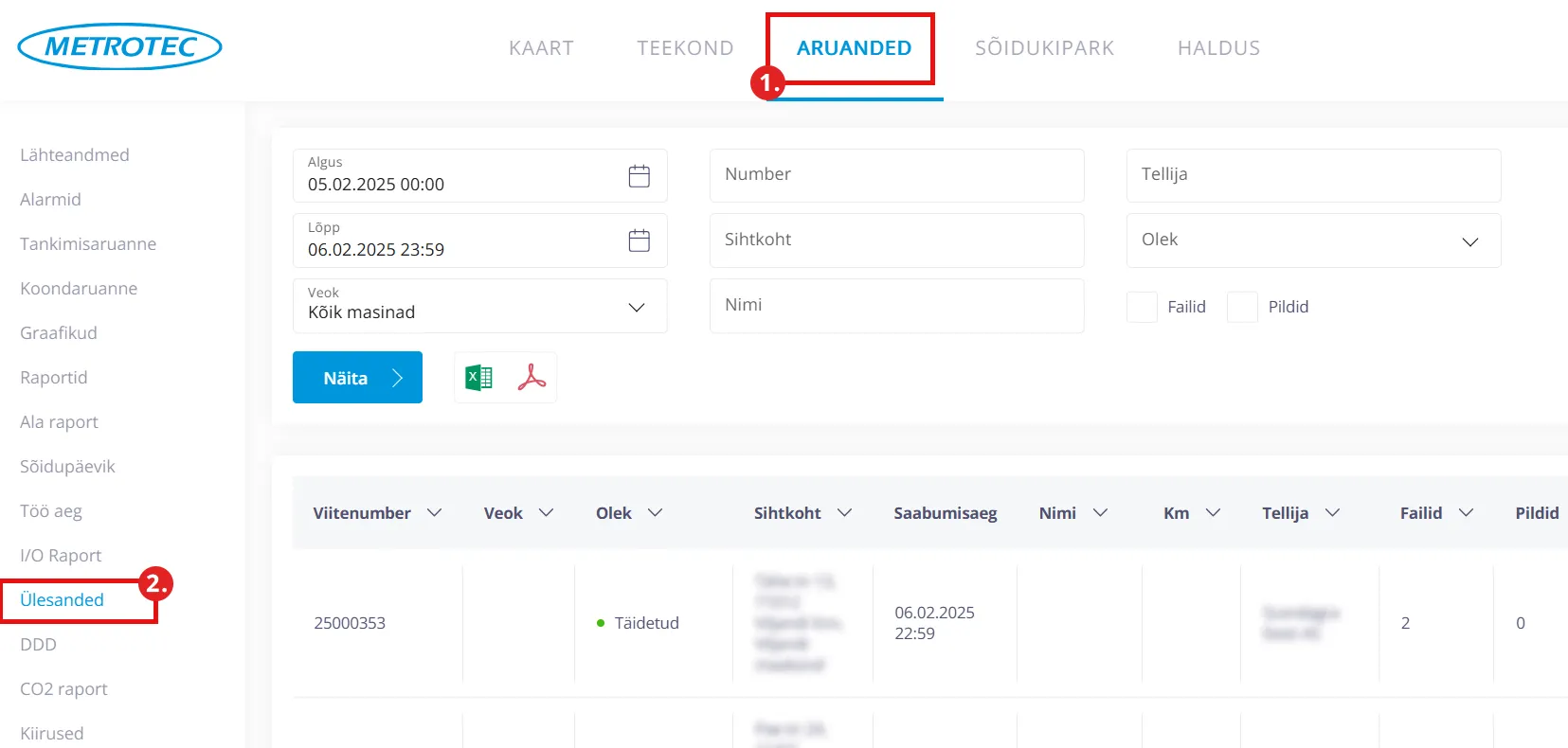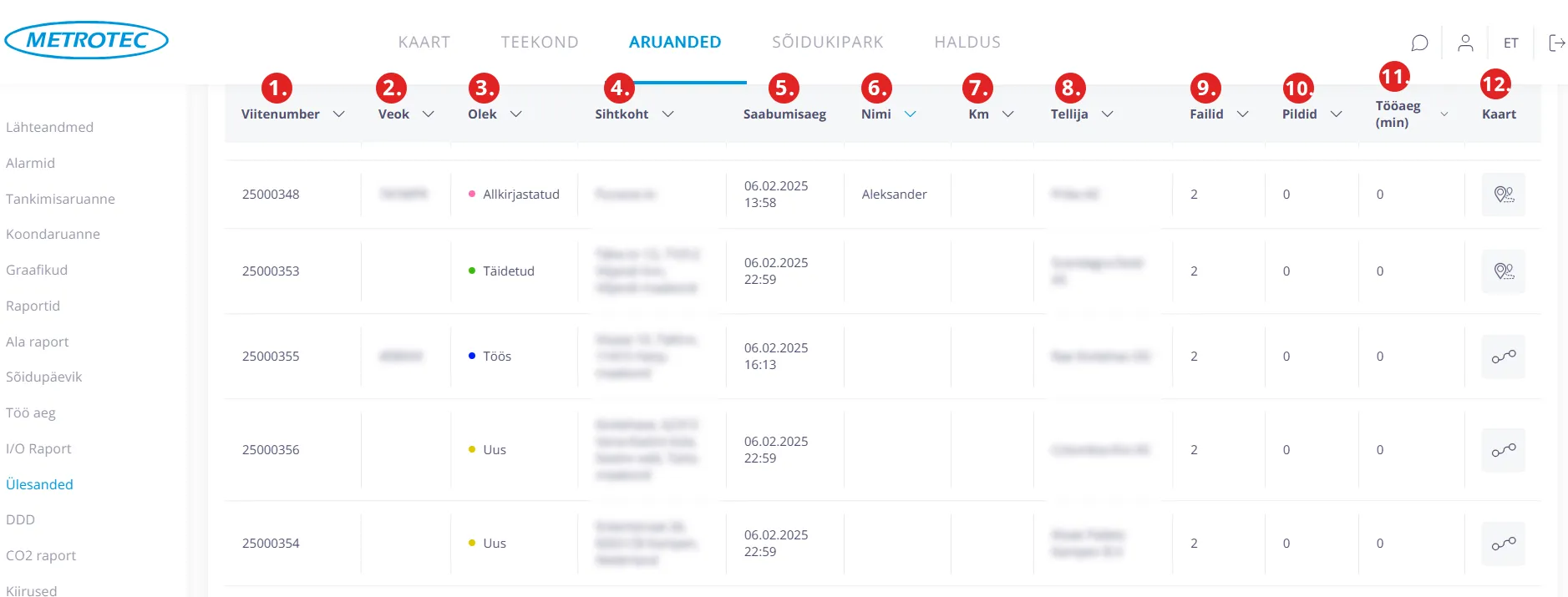 - Viitenumber - unikaalne number, mille Metrotec süsteem automaatselt igale ülesandele tekitab.