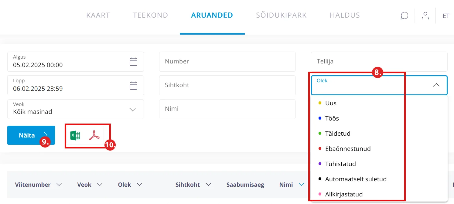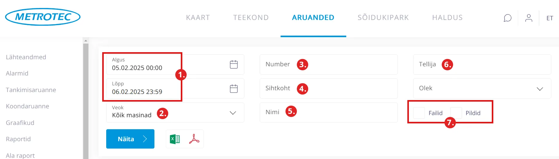 - Soovi korral saad andmed eksportida klikates Excel või PDF nupule.