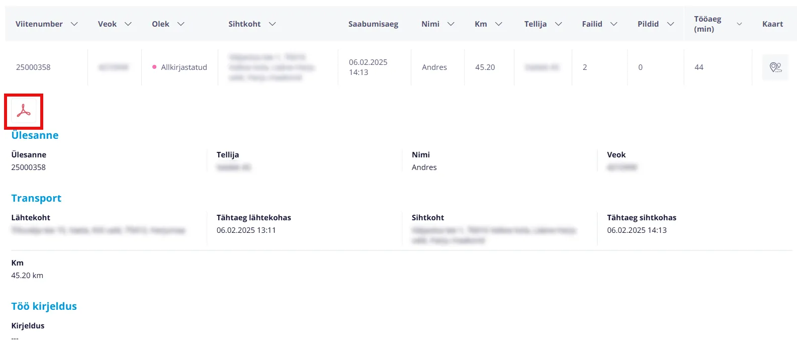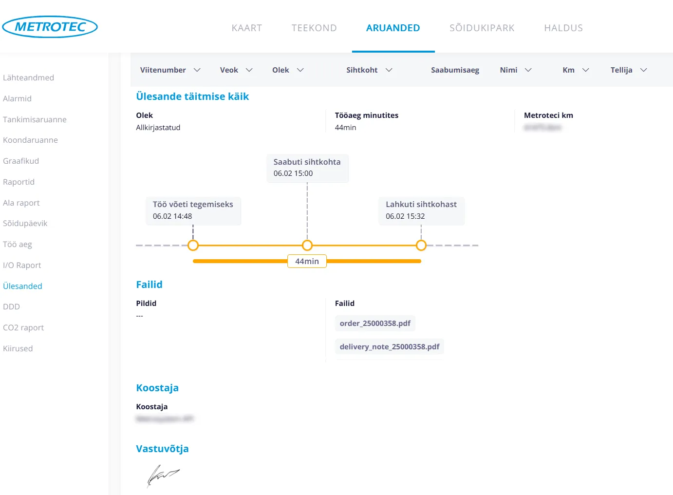 - Allkirjastatud - tellija on oma allkirjaga kinnitanud koorma või kauba kättesaamist.