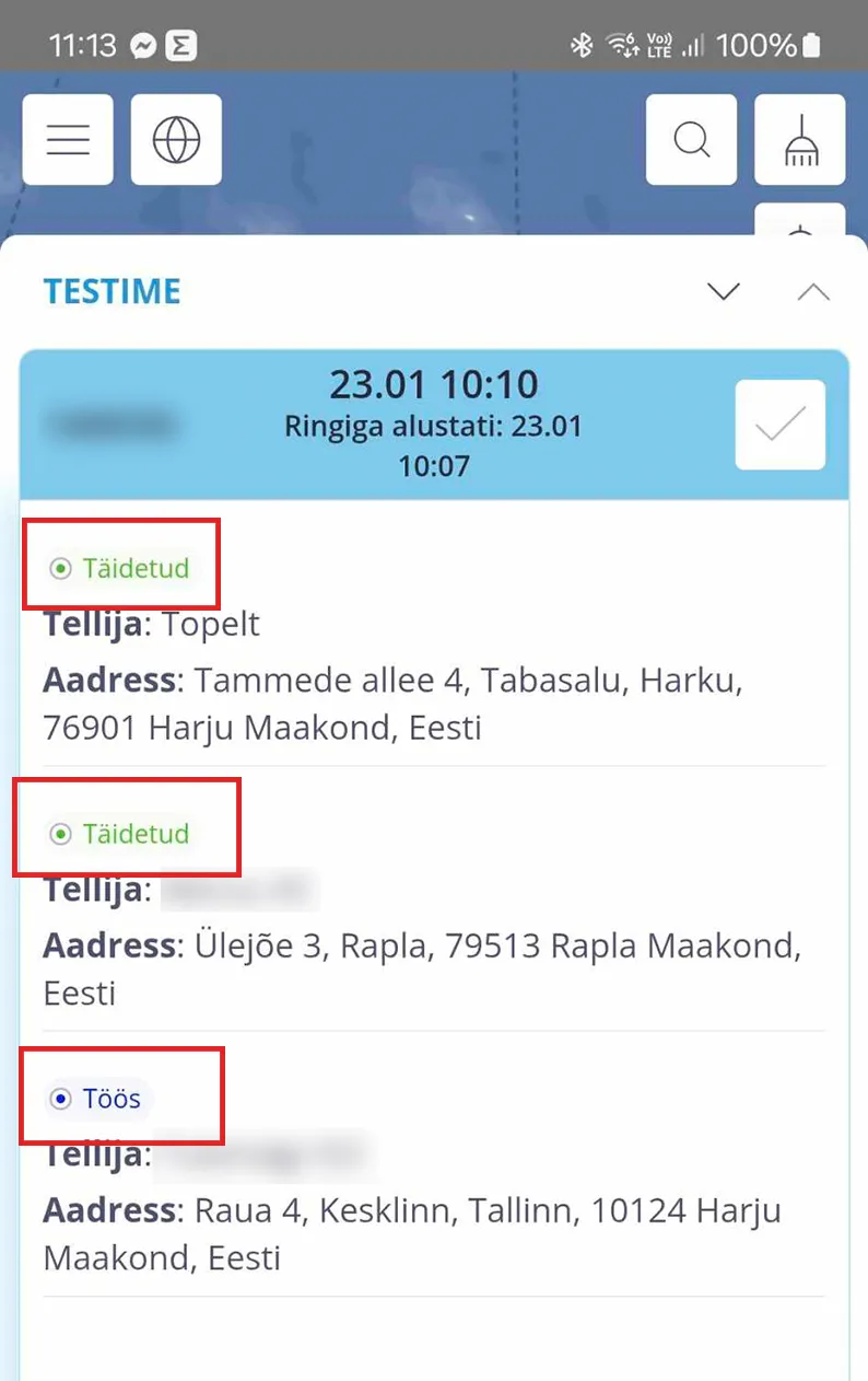 Siin on juhend, kuidas autojuht oma äpist kogu tööde ja sõiduringide infot näeb.