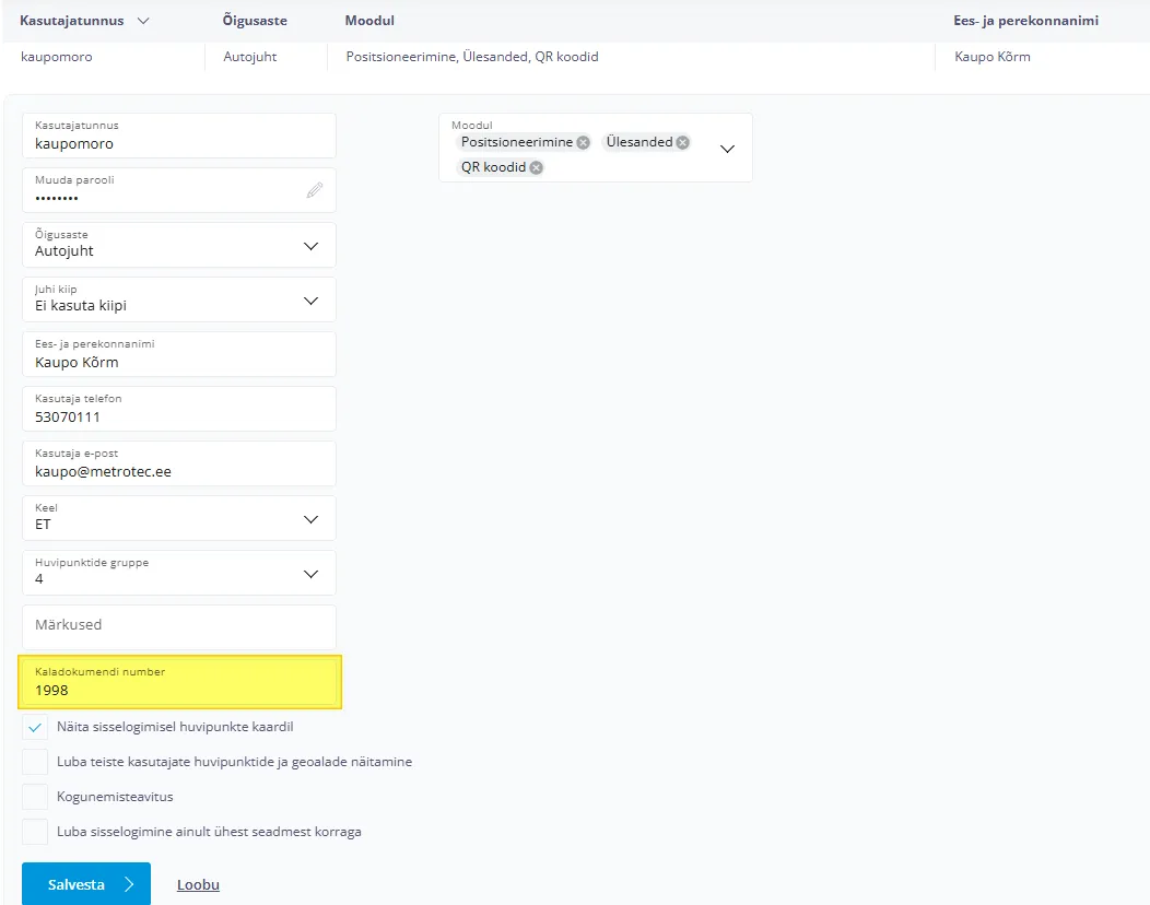 Selleks on vajalik luua autojuhi (https://support.metrotec.ee/haldus/autojuhikonto/) alamkontod ning määrate neile mooduliteks Positsioneerimine, Ülesanded, QR koodid (vajadusel ka sõidulehed). Autojuhid saavad transpordidokumente lisada peale QR koodi skaneerimist (https://support.metrotec.ee/autojuhivaade/toole-registreerimine-qr/).