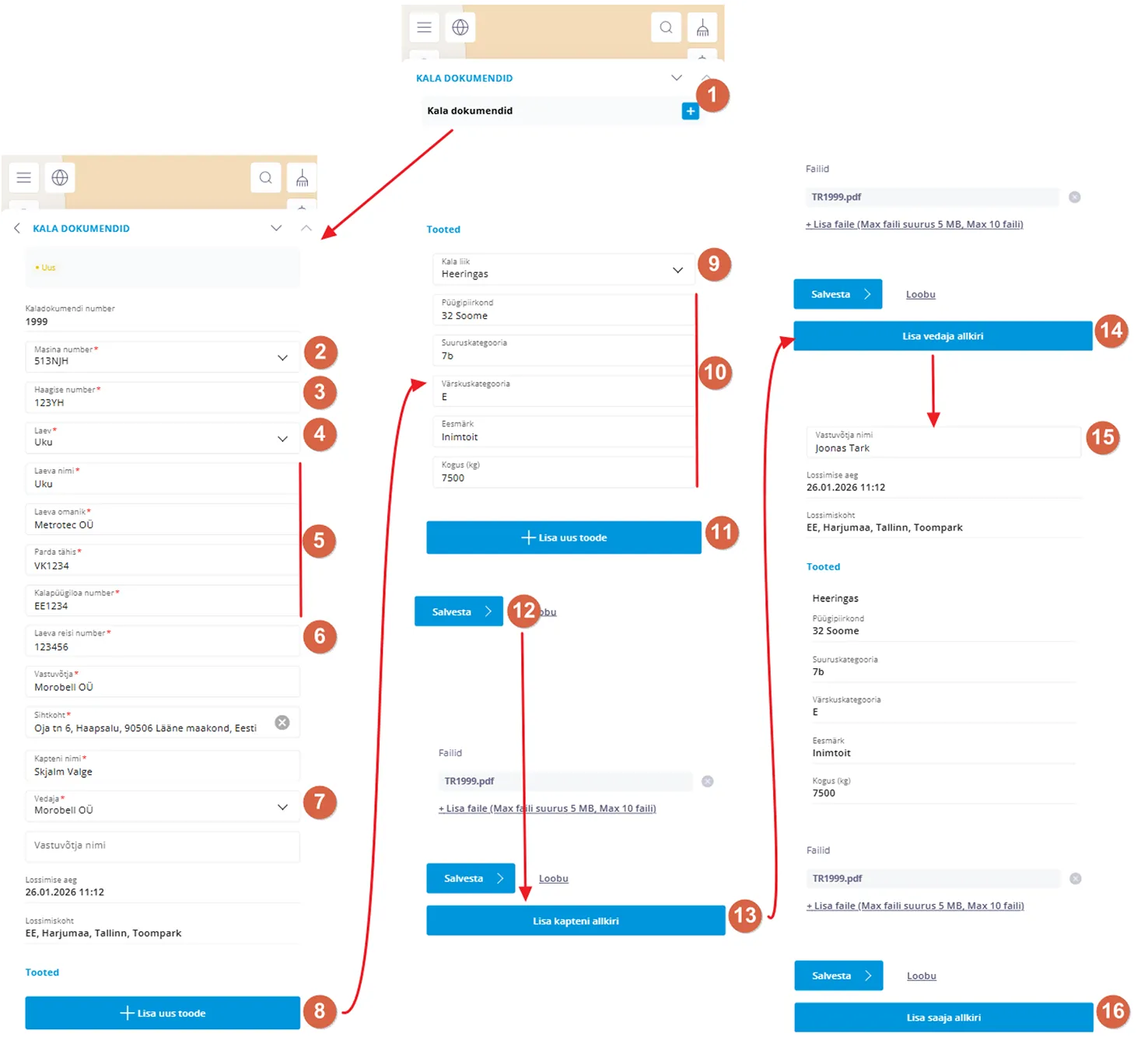 - Kala vastuvõtja, kellele sellelt laevalt lossitav kala läheb. Need andmed lähevad automaatselt kala transpordidokumendile