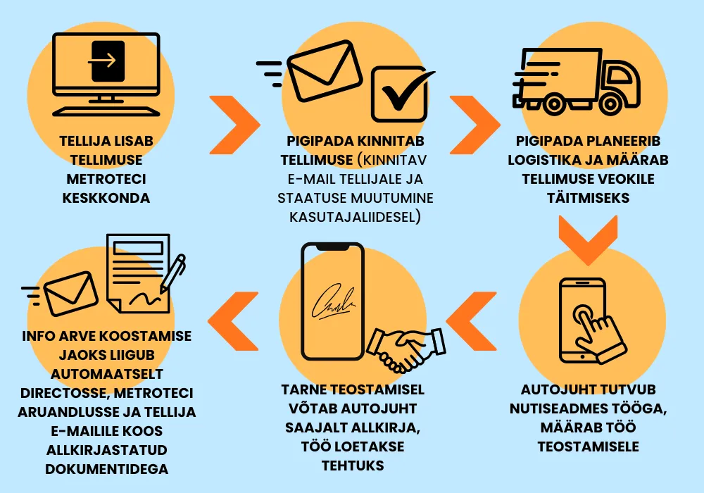 heading.anchorLabelTellimuste sisestamiseks, nende haldamiseks, juhtidele saatmiseks ning juhtide poolt allkirjade kogumiseks on vajalik teha seadistusi nii Directo kui Metroteci poolel.
