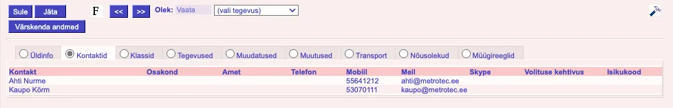 - Kontaktid – Lisada kontaktisikutele e-maili aadress ja telefoninumber