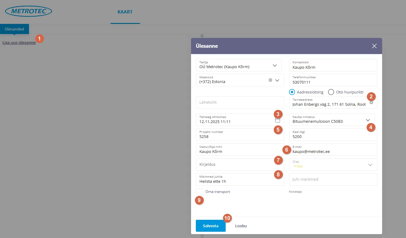 heading.anchorLabelKui tellija ei kasuta Metroteci keskkonda tellimuste tegemiseks, saab tellimuse lisada käsitsi.