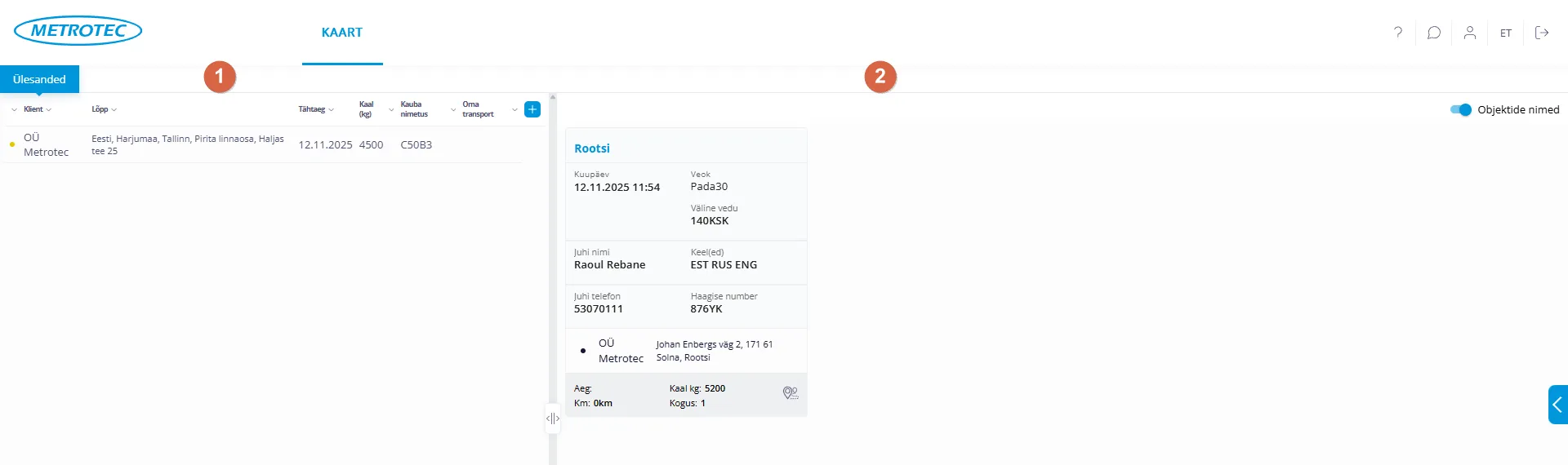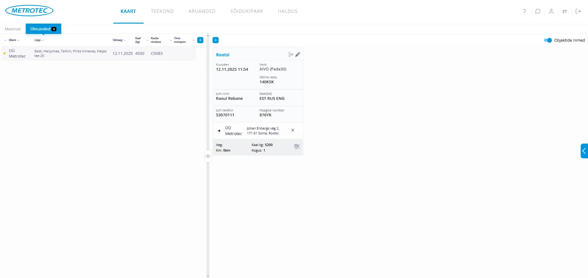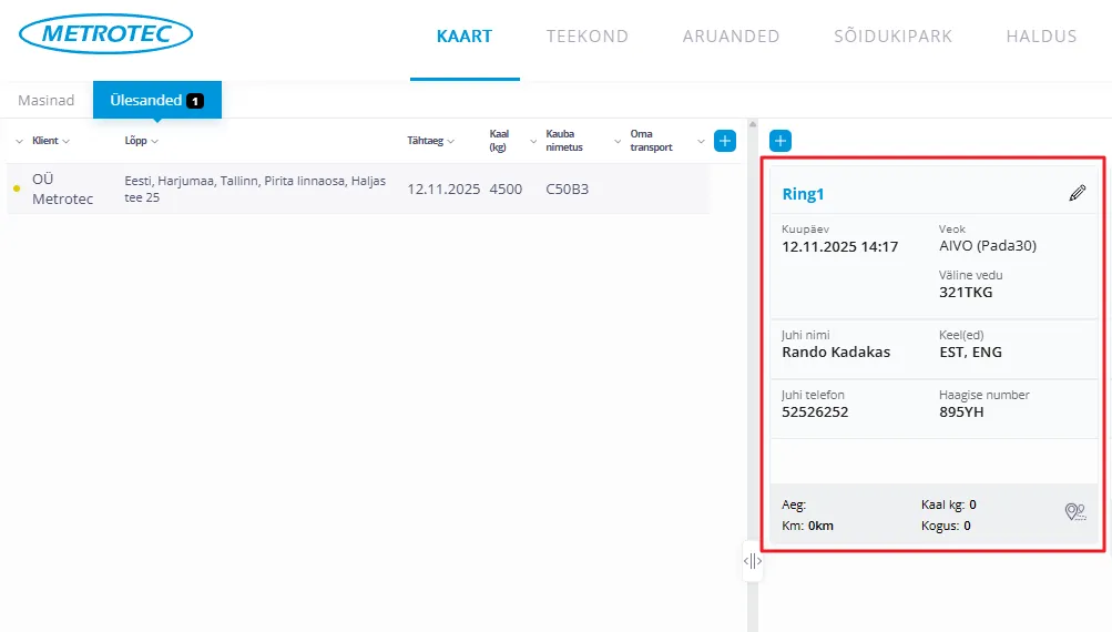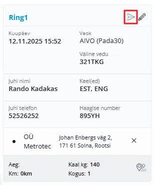 - Kuupäev – info autojuhile, millal tööga peaks alustama
