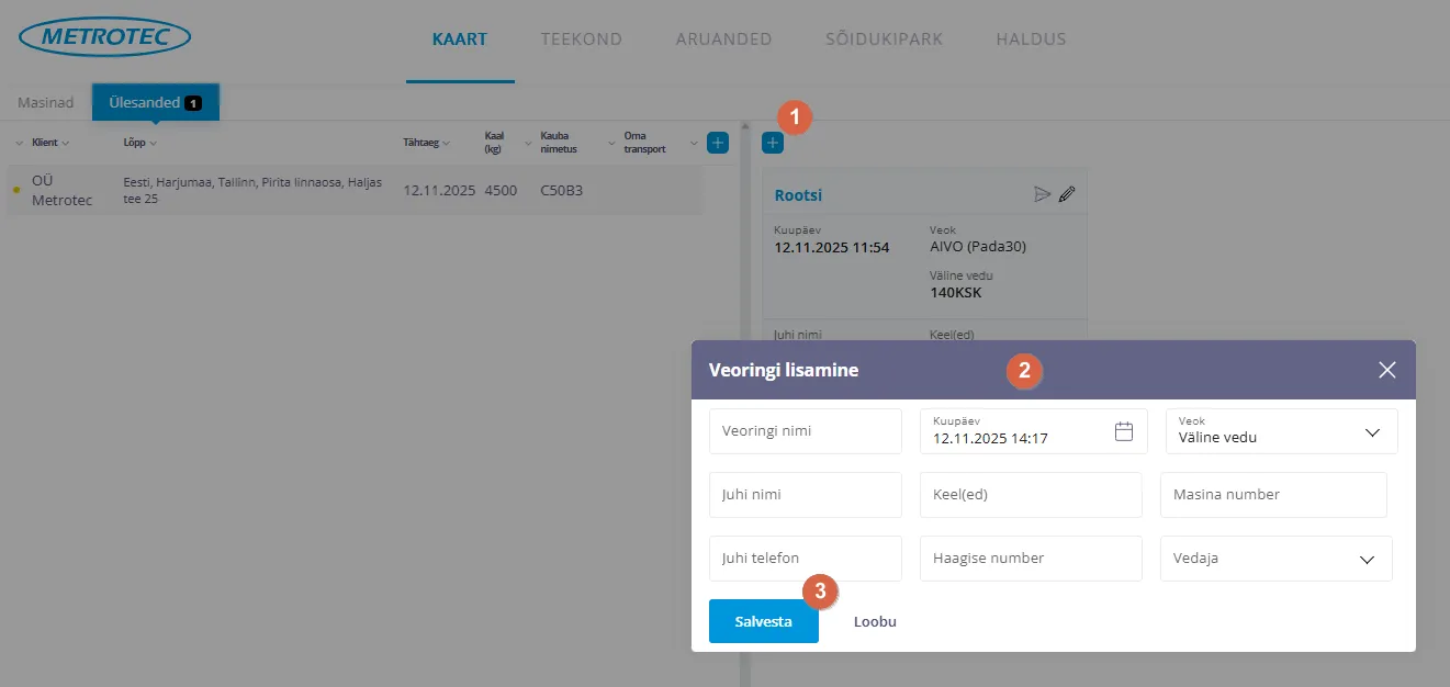heading.anchorLabelVedajad on vaja eelnevalt sisestada, et neid saaks valida vedude teostajaks.