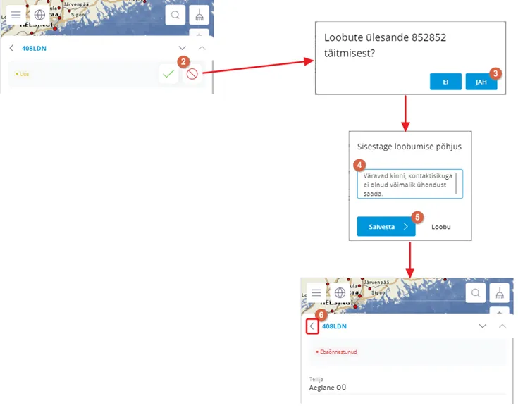 - Kinnita, et soovid töö tühistada (avaneb uus aken)