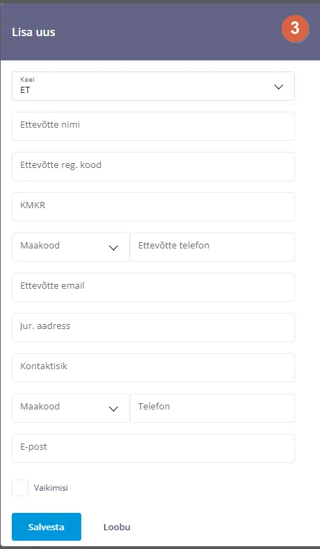 - Kui kõik info on sisestatud siis kliki nupul “Salvesta”.