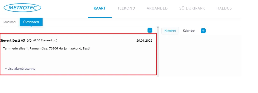 Salvestamise järgselt ilmub tegemist vajav ülesanne tellimuse alla alamülesandena.