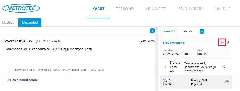heading.anchorLabelÜlesannete moodul koondab tellimuste sisestamise, olemasolevate ressursside abil logistika haldamise, digitaalsete veoselehtede loomise ning töö teostamist tõendava veoselehe allkirjastamise. Lahendus on loodud selliselt, et transporditellimuse andmete sisestamisel filtreeritakse vajalikud andmed, mille alusel luuakse automaatselt digitaalne veoseleht.