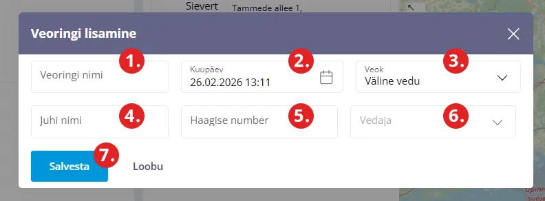 - Vedaja - vali rippmenüüst vedaja nimi.