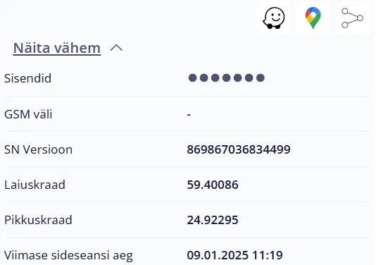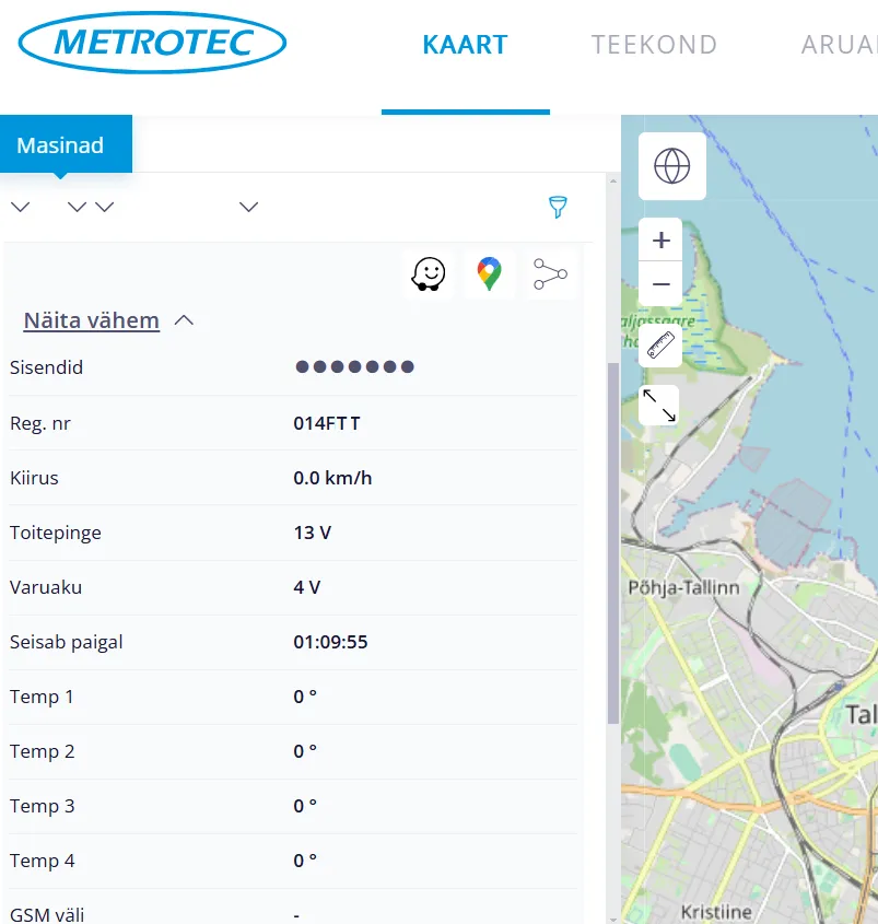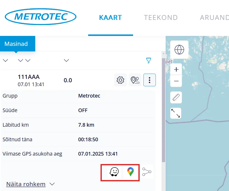 Kliki ikoonil “Waze” või “Google Maps” ja avaneb eraldi aken ning masina asukoht tekib “Waze” või “Google