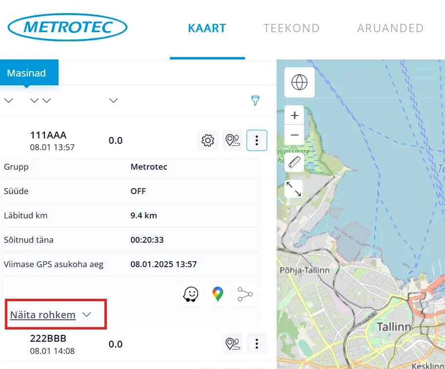 Klikates tekstil “Näita rohkem”, avaneb täiendav info antud masina kohta.