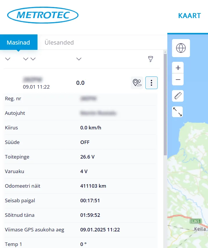 Viimane GPS asukoha aeg - millal viimati antud masina kohta andmeid Metrotec keskkonda laeti.