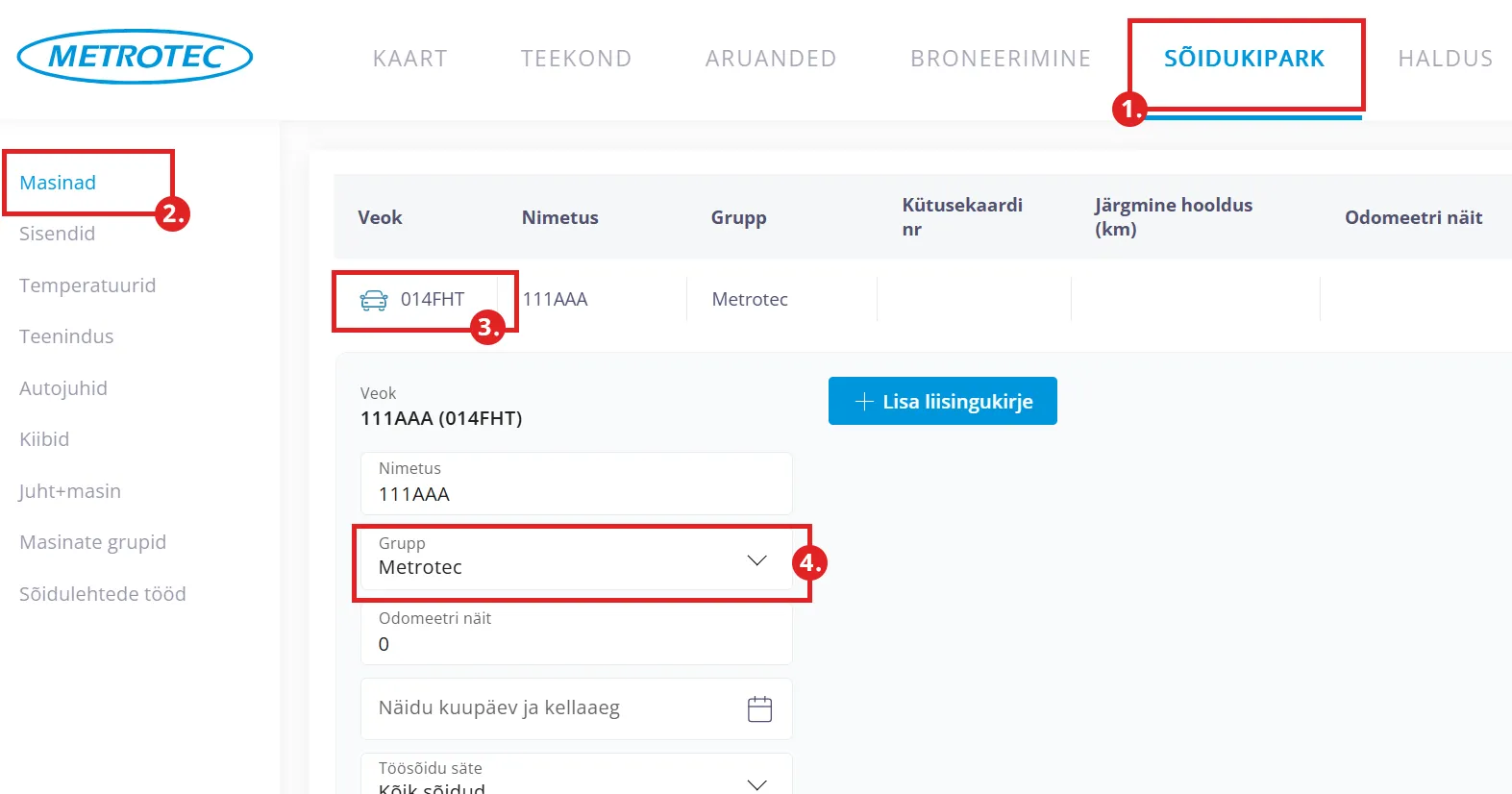 - Masina nimi - vaikimisi on näha masina registreerimisnumber, kuid seda saab soovi korral muuta.