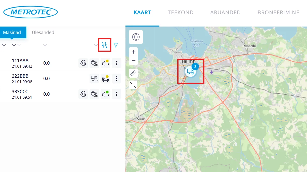 “Klastri” ikoon võimaldab sõidukeid kogumitesse grupeerida. Kui kontol seda näha ei ole siis võta ühendust oma